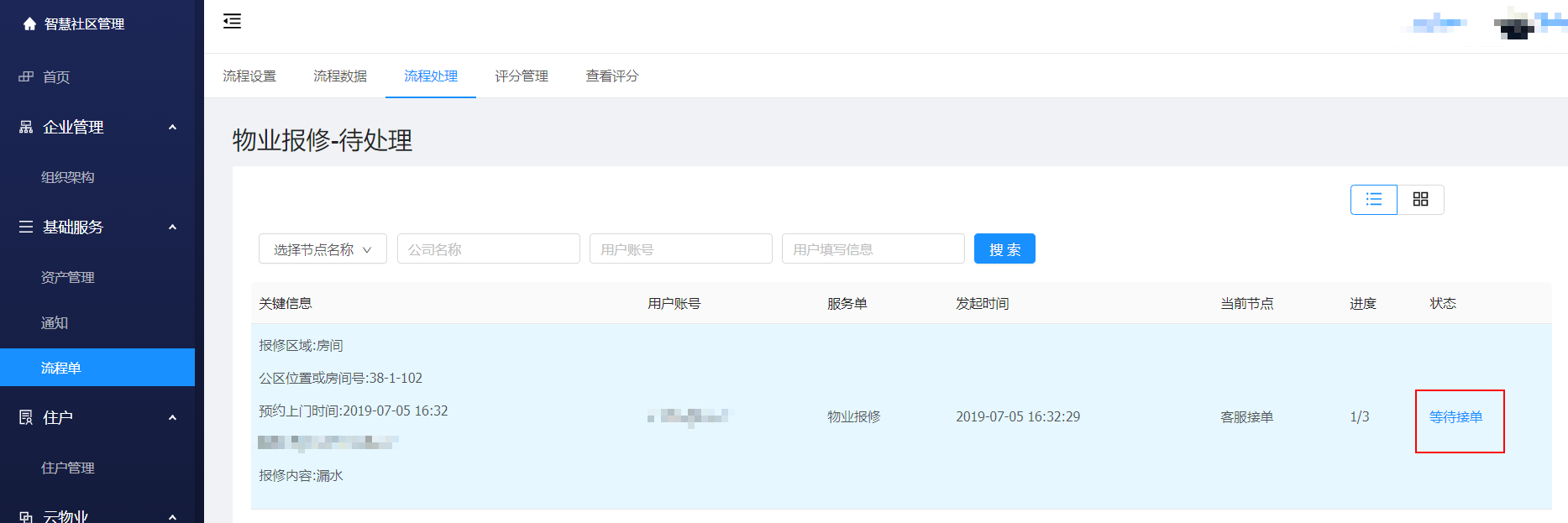 物业报修单处理