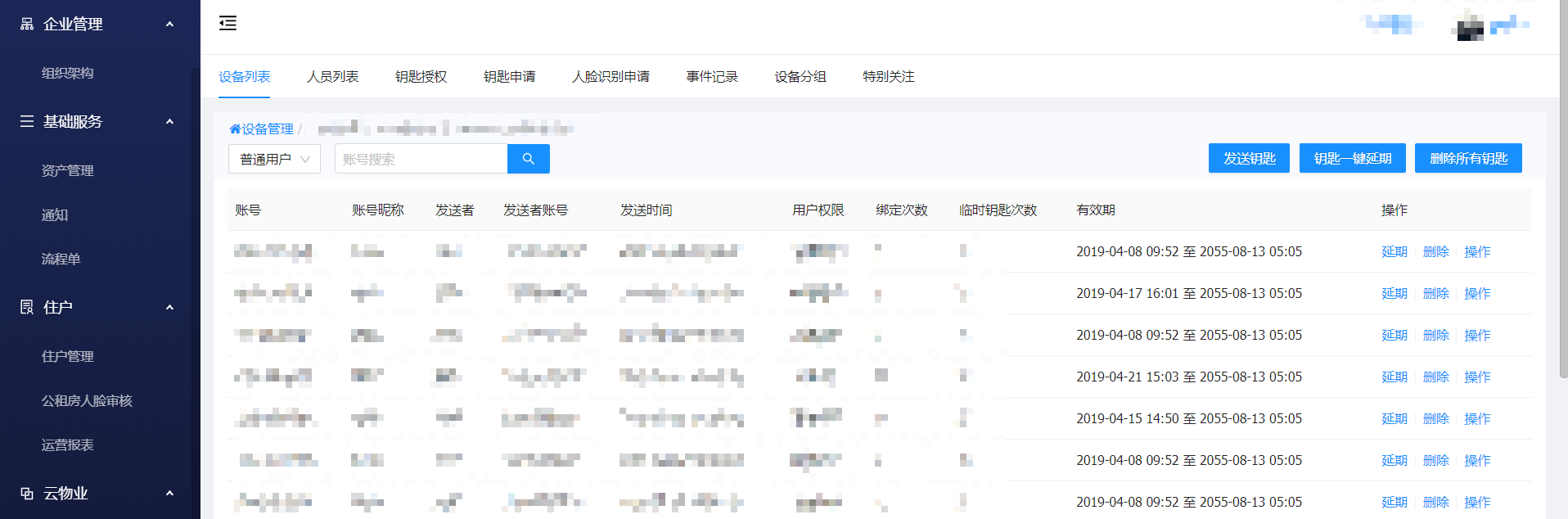 点击钥匙管理 可以看到一已授权的用户