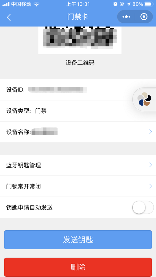 13. 点击发送钥匙,就可以给用户发送钥匙了